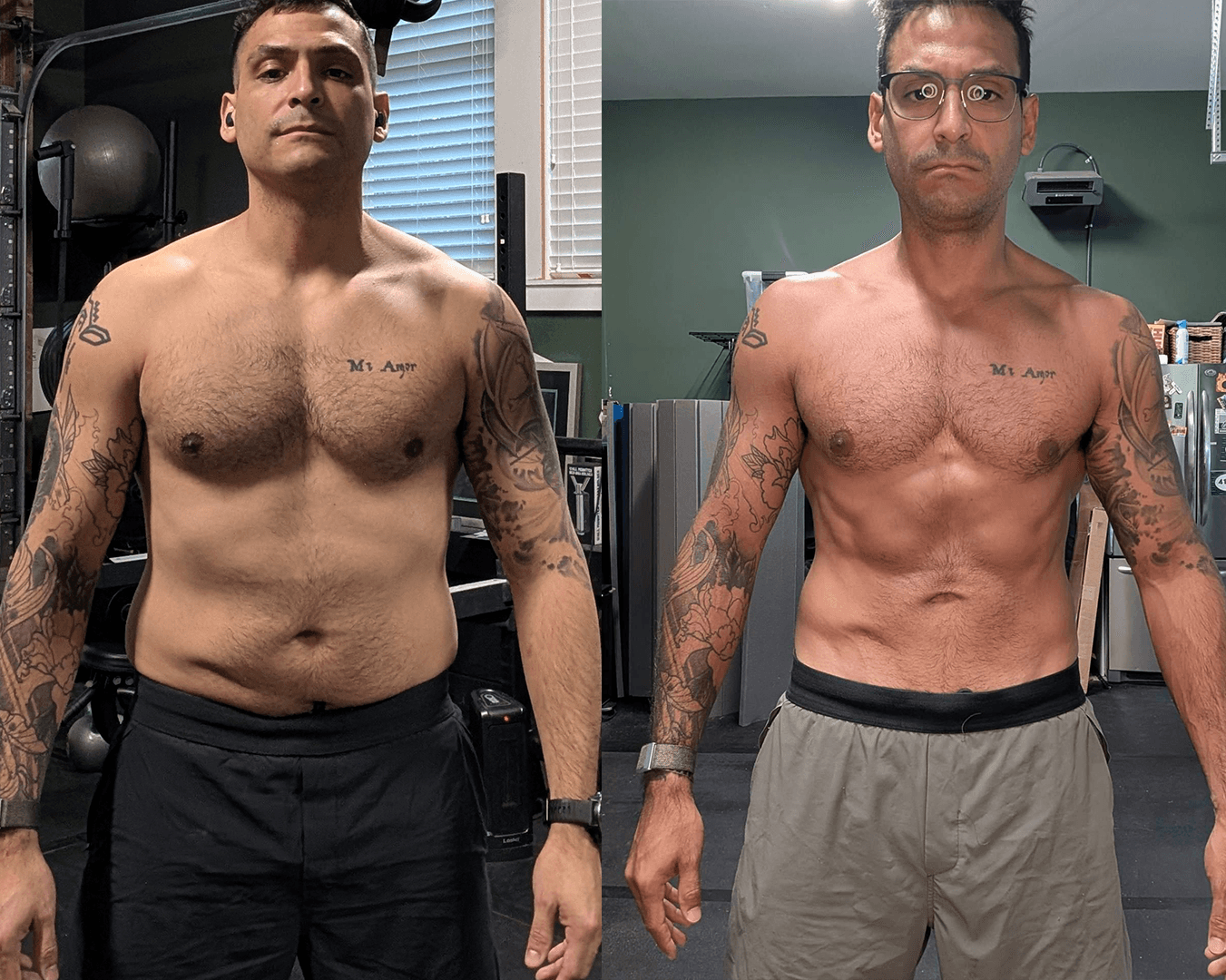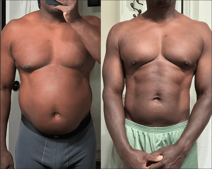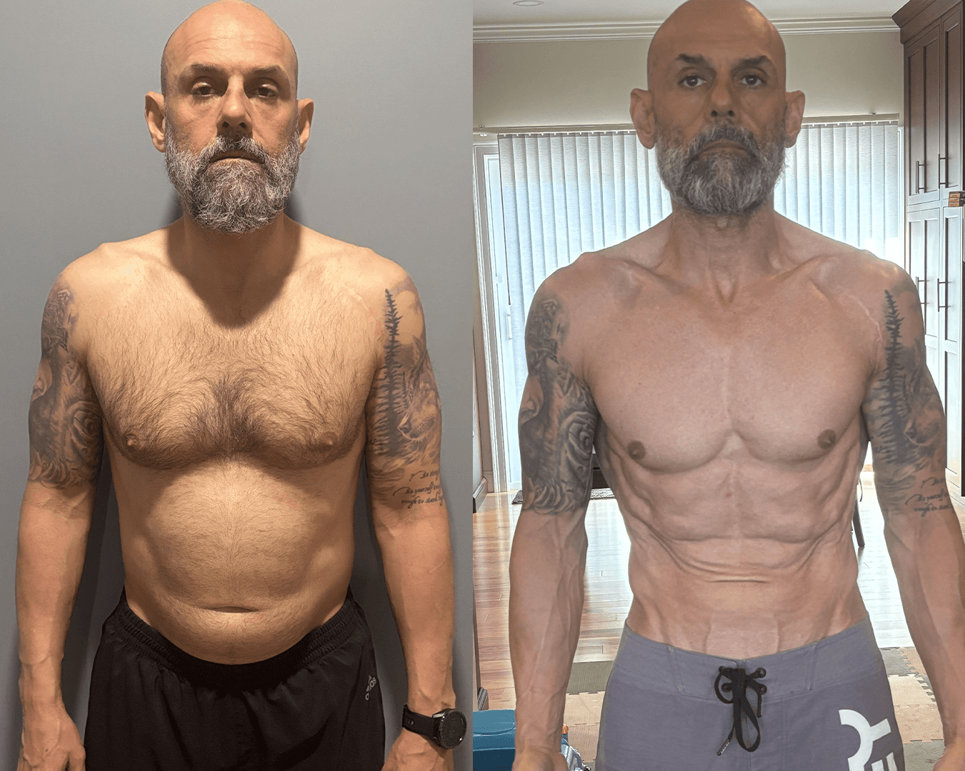 "Took my shirt off to shower and I even surprised myself as four months comes to a close. Dr. Mike and Dr. Zino coached me into the best shape of my life at 47 years old."